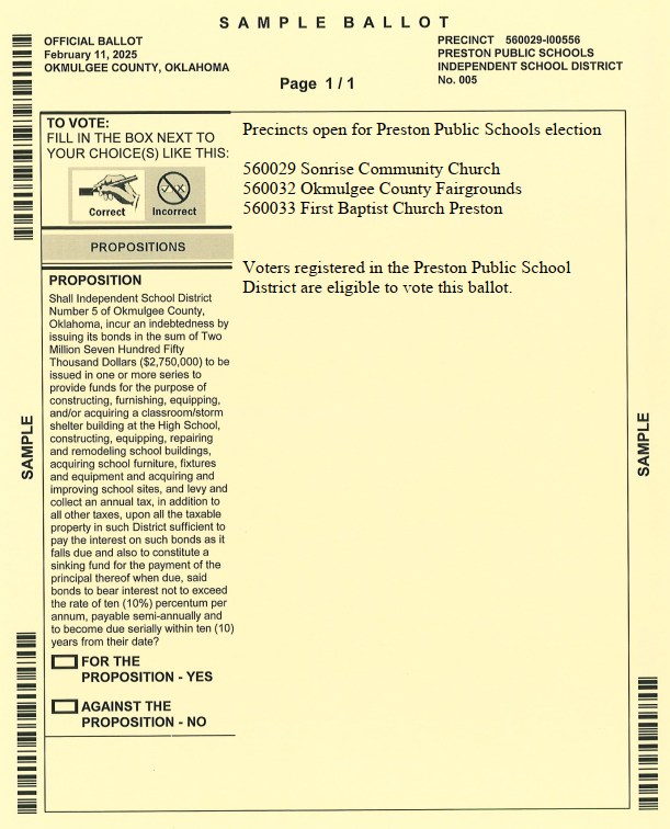 Not sure where to vote or what’s on your ballot? Click here to access the OK Voter Portal for sample ballots and polling locations: OK Voter Portal