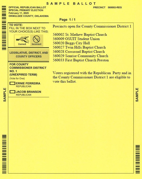 You can also find the Okmulgee County Election Board on Facebook at https://www.facebook.com/OkmulgeeCountyElectionBoard/